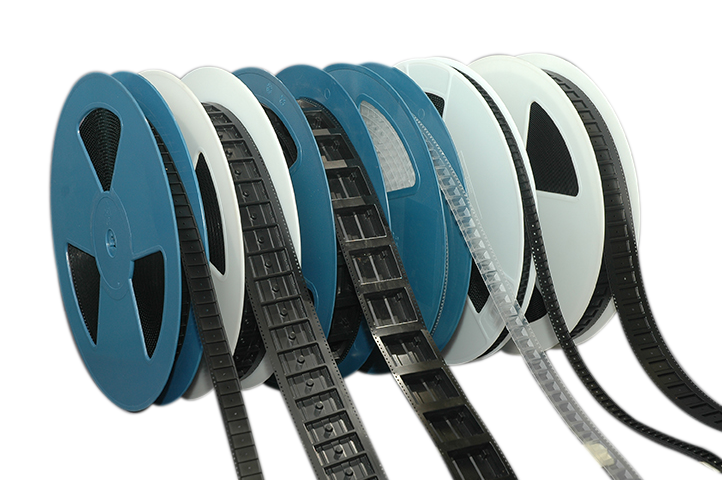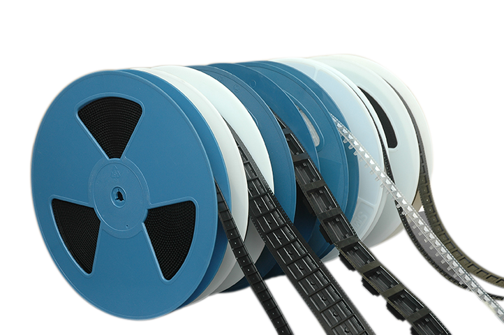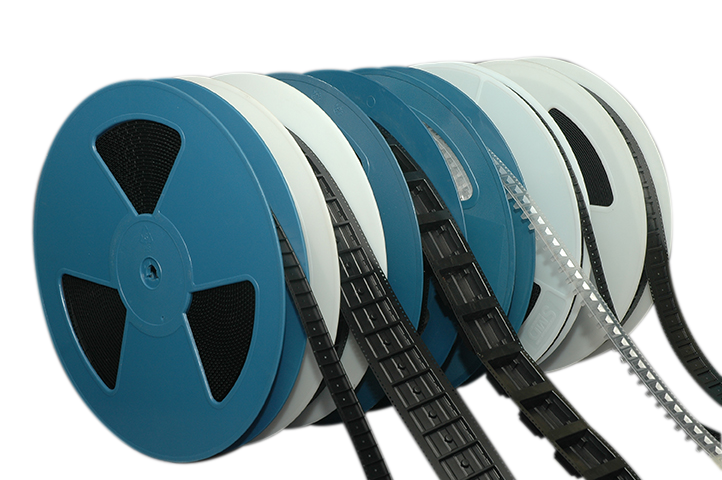 Embossed carrier tape provides protection to integrated circuits and other devices from physical and electro-static discharge (ESD) damage during shipping and storage. Carrier tape is widely used for presenting devices to pick-and-place machines for automatic placement on to printed circuit boards